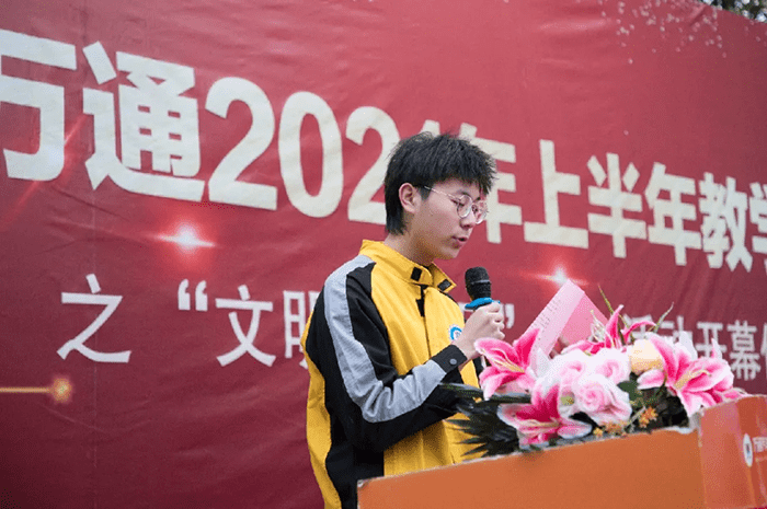 活動過程中教務處相關領導對本次文明月開幕活動進行致辭,領導在致辭中說到:“全校學生要加強自我約束,提高自身思想道德水平。要在本次文明月活動中強化自身文明意識,做一個懂文明、講禮貌的優秀少年。”