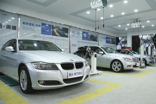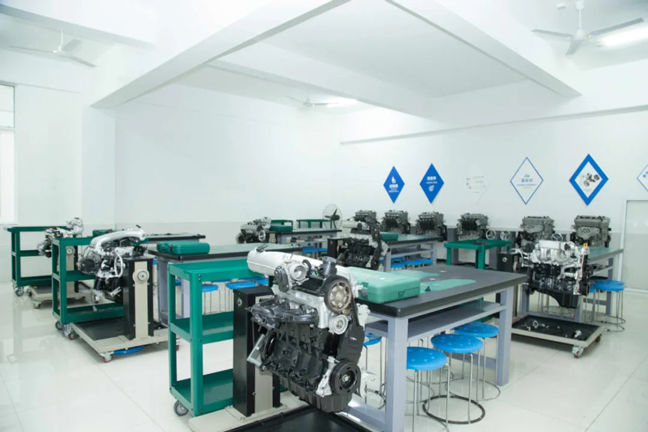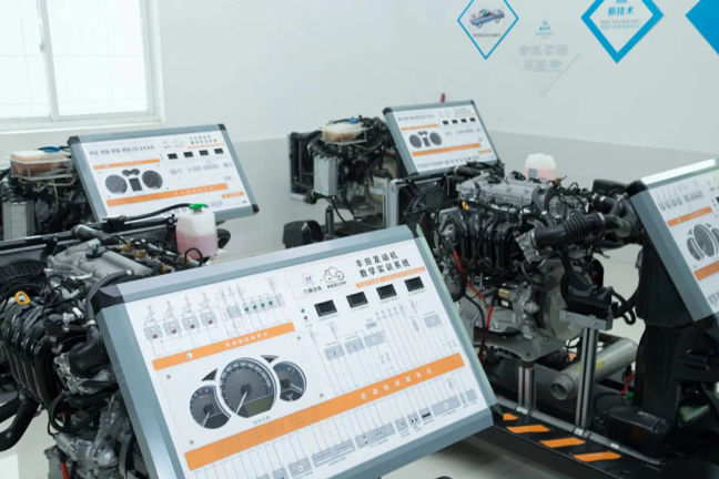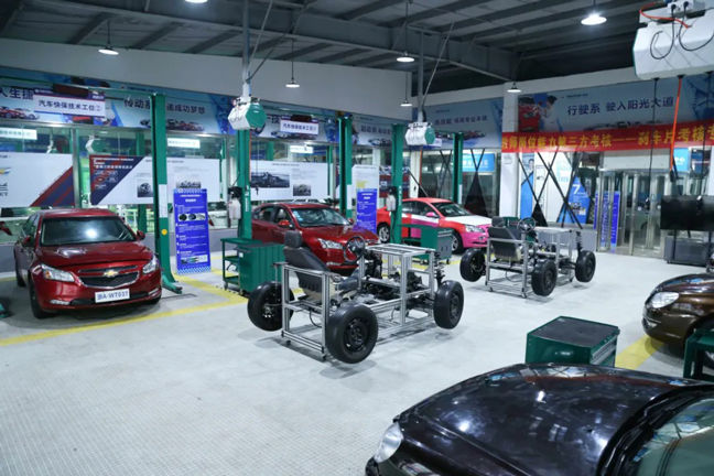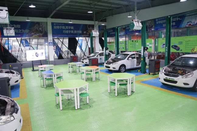 整車實訓中心整潔空曠,老師們每天穿梭在這些區域為大家上直播課程。