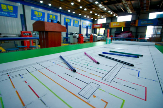 走在學校里,經常在學校各區域看到他。他還經常到老師辦公室一聊就是大半天,然后回到宿舍自己琢磨,經過向老師的請教和自己的思考,他準備自己手繪一幅整車的電路原理圖,這樣對整部汽車的電路有了完整的概念,然后再分別畫出電源、啟動、燈光信號、安全控制等模塊的圖。想到就干,張一凡買了長達10余米的畫紙開始下筆。