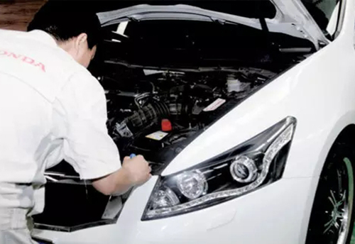 鈑噴車間總檢在負責該車輛鈑噴操作人員的輔助下對被維修車輛的照明燈光進行檢測,其中包括:前照燈、轉向燈、制動燈以及倒車燈等。