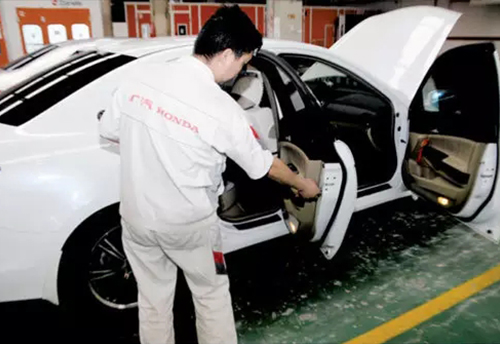 鈑噴車間總檢在負責該車輛鈑噴操作人員的陪同下,按照順時針的環形順序對車輛進行外觀和內飾檢查。