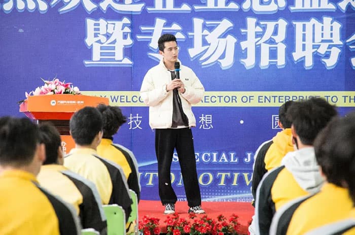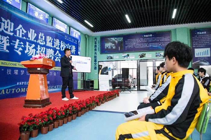 而這次,成功學子蔡宇文更是帶著創辦公司的專業人才需求來學校招聘人才,提供了機修、美容、鈑金、噴漆、銷售、前臺服務等種類豐富的崗位需求。