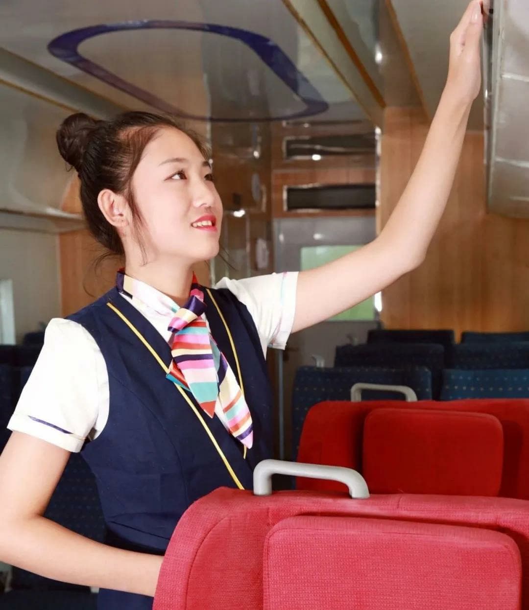 在動車、高鐵上負責引領、核對車票,為旅客提供全方位的服務。工作時,統一著車廂乘務員鐵路服裝。