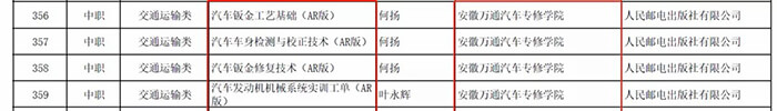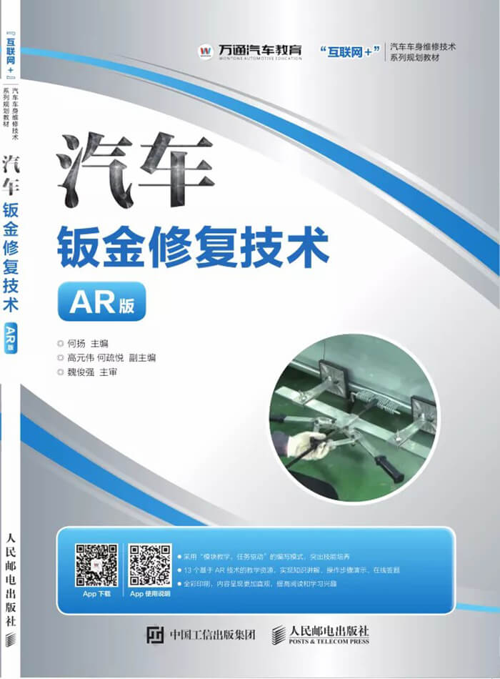 其中,萬通汽車教育學院何揚老師編寫的《汽車鈑金工藝基礎(AR版)》、《汽車車身檢測與校正技術(AR版)》、《汽車鈑金修復技術(AR版)》,費維東編寫的《汽車發動機電控系統實訓工單(AR版)》,廖光宙編寫的《汽車底盤電控系統實訓工單(AR版)》,葉永輝編寫的《汽車發動機機械系統實訓工單(AR版)》共六本教材入選了“十三五”職業教育國家規劃教材書目。