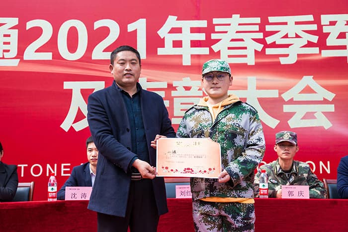 隨后,學校表彰了新生軍訓中的先進個人和集體:優秀訓練標兵、優秀內務標兵、優秀宿舍、優秀連隊,并為獲獎的先進個人和集體頒發了榮譽證書。