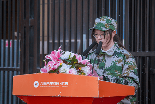 綜合專業2001班吳貝嘉同學代表所有新生發言,用鏗鏘的語言,在臺上代表參訓學員發言,每字每句,都鼓舞士氣。吳貝嘉同學發言說:“在未來的十五天里,我們決不會退縮,我們會在軍訓中變得更堅強,更勇敢,更自律!并把這種精神帶到今后的學習和生活中去。