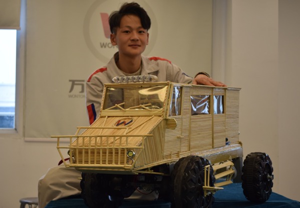就在剛剛結束的萬通質量季活動中,陸鑫偉獨立完成的純電動越野房車,受到了評委一致好評,以高票數摘得工藝品制作大賽冠 軍。而這個作品并不是他唯一的作品,他還制作了游艇,等比例縮小的房屋等模型,每一個都精致非凡,體現了他出類拔萃的動手能力。