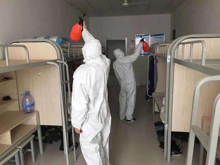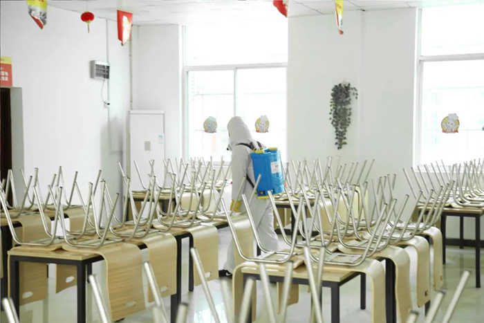 校園內,每天由學校工作人員對教室、食堂、走廊、寢室、辦公區域等公共場所進行消毒;所有到崗教師及相關工作人員,每日完成體溫檢測并做好記錄;制定校園防疫相關規定,對于學生返學上課可能遇到的問題做好相應預案。