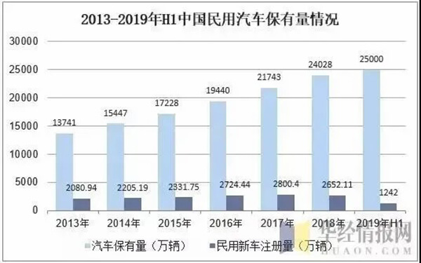 隨著中國(guó)經(jīng)濟(jì)的高速增長(zhǎng),居民消費(fèi)能力穩(wěn)步提升,汽車銷量也節(jié)節(jié)攀升,銷量規(guī)模擴(kuò)大了近4倍。截至2019年,全國(guó)機(jī)動(dòng)車保有量達(dá)3.4億輛,其中汽車2.5億輛;