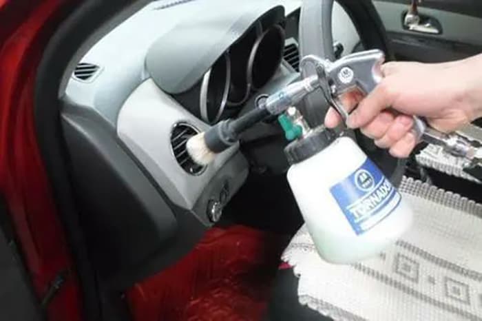 2、清洗空調(diào)我們?cè)谧霰pB(yǎng)的時(shí)候,經(jīng)常會(huì)遇到4S店介紹要不要做一個(gè)車(chē)內(nèi)空調(diào)除菌,其實(shí)就是往空調(diào)那一塊噴一噴除菌劑,這個(gè)步驟自己也能完成,沒(méi)必要在4S店做,花費(fèi)不必要的錢(qián)。
