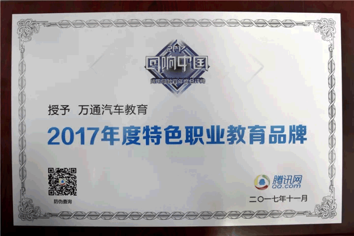 2017回響中國騰訊網教育年度總評選”獲獎名單在盛典上公布,教育品牌:萬通汽車教育、歐米奇西點西餐教育、華信智原教育榮獲“2017年度特色職業教育品牌”,新華教育獲“2017年度品牌實力民辦高校”,新東方烹飪教育獲“2017年度影響力教育品牌”。萬通汽車教育受邀參加此次活動,經過騰訊線上線下百萬評選,榮膺“2017年度特色職業教育品牌”殊榮,響亮全國。