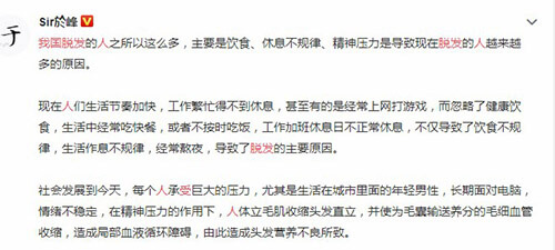 我國脫發的人之所以這么多,主要是飲食、休息不規律、精神壓力是導致現在脫發的人越來越多的原因。