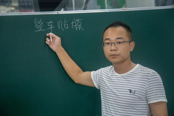 在教學中,他始終以嚴謹的態度對待工作,悉心教學。看車型、裁剪、烘烤、貼膜每項汽車貼膜施工流程丁老師都會親自示范一遍。上課前20分鐘丁老師會指出上節課學習過程當中,同學們所遇到的困難和操作不規范的地方,把這些作為本堂課的教學案例。在同學們實操過程當中,丁老師會 的教操作不規范的學生,強化他們基礎薄弱環節。