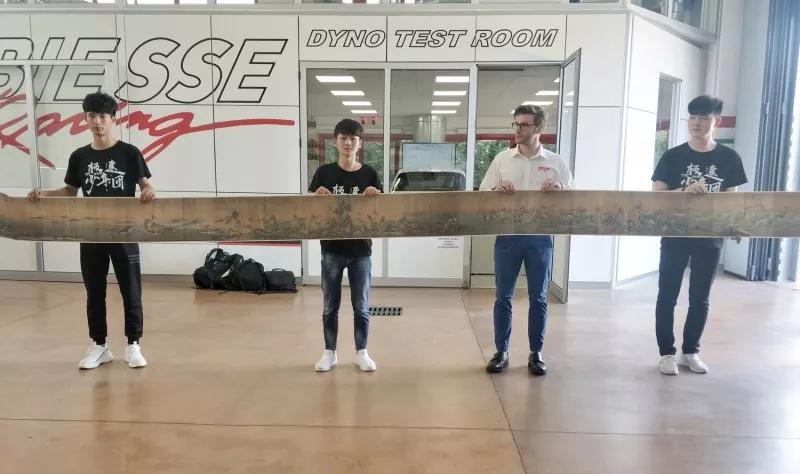 學習結束后,極速少年團向廠方贈送了一幅《千里江山圖》和中國傳統工藝品。廠方負責人也對萬通汽車教育、極速少年團給予了高度贊賞,并祝福萬通汽車教育30周年生日快樂。