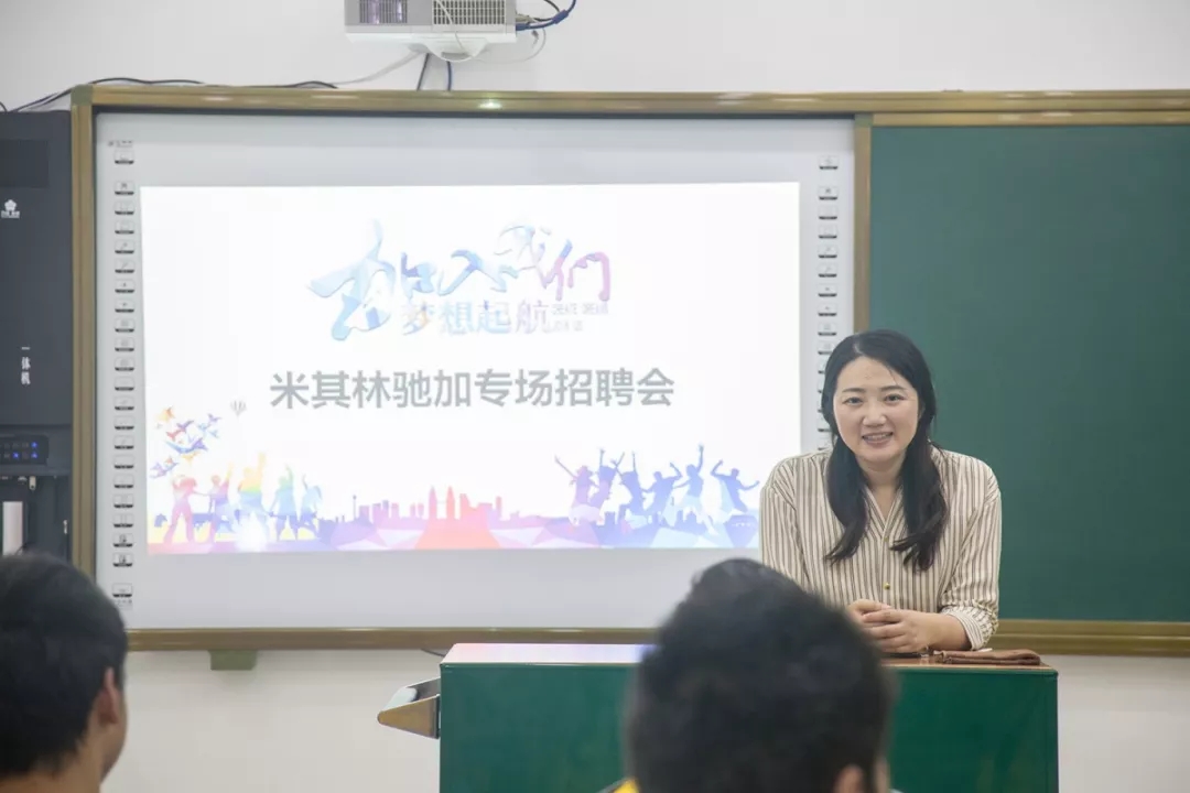 馳加是米其林集團于2002年推出的汽車售后服務品牌。自2003年2月米其林在中國建立家馳加汽車服務中心以來,馳加汽車服務網絡快速發展。截止至2017年2月底,馳加門店數已逾1400家,遍布全國275個城市。此次代表馳加來到校園主持招聘工作的是馳加的人事經理。據了解,高端車檢測與維修技師、汽車商務、銷售客服、汽車美容、汽車鈑噴等職位都急需人才加入。