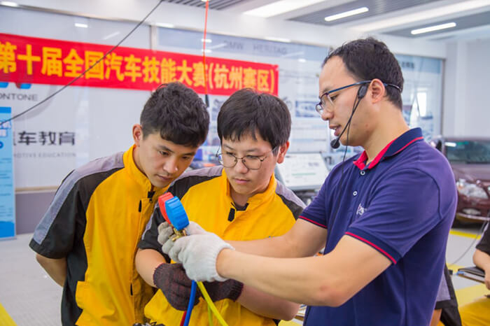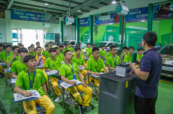 萬通以市場為導向辦學,在充分考察市場的基礎上,結合市場需求制定實操課程,除汽車檢測與維修等基礎專業外,還設置汽車新能源技術、汽車鈑噴、汽車電控、汽車美容、商務營銷等專業,確保走在行業前沿,與市場接軌。
